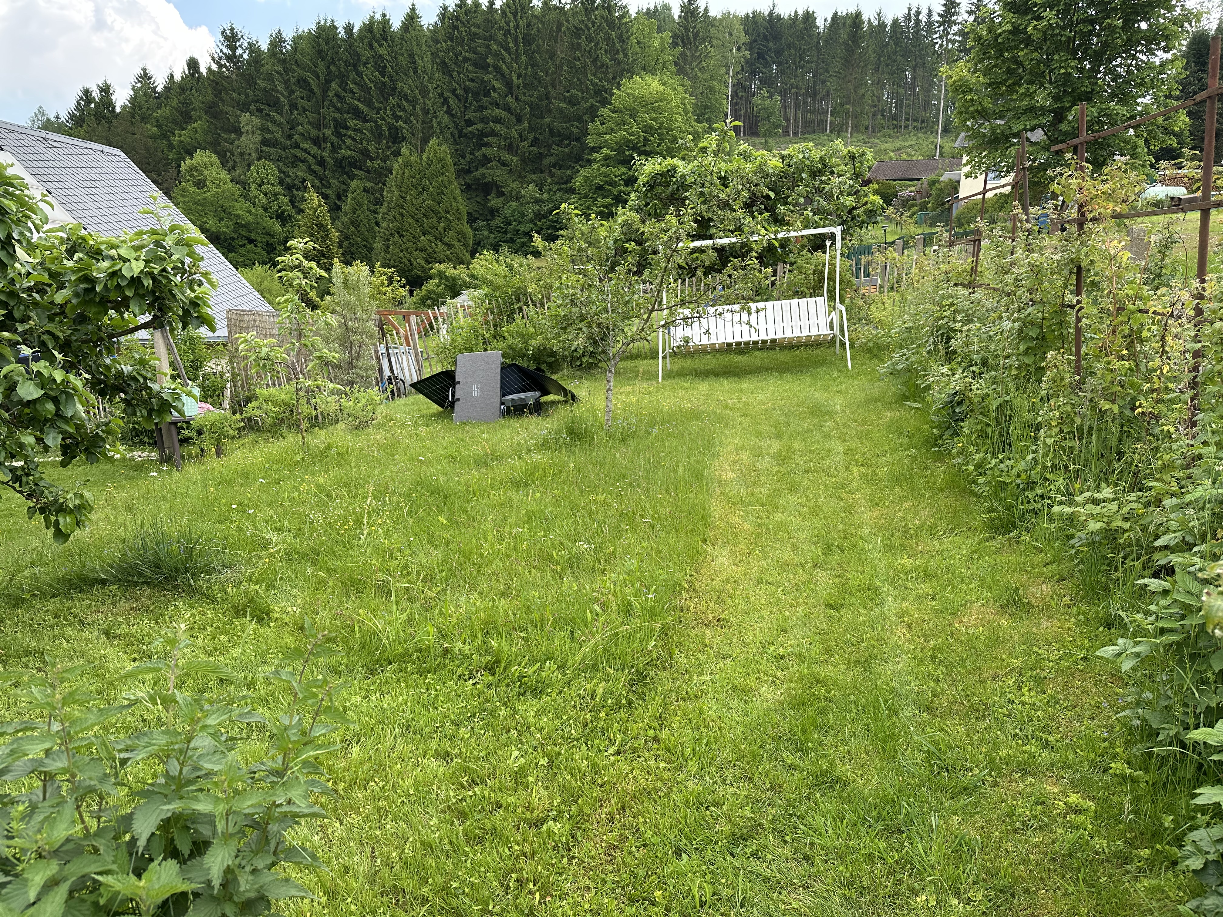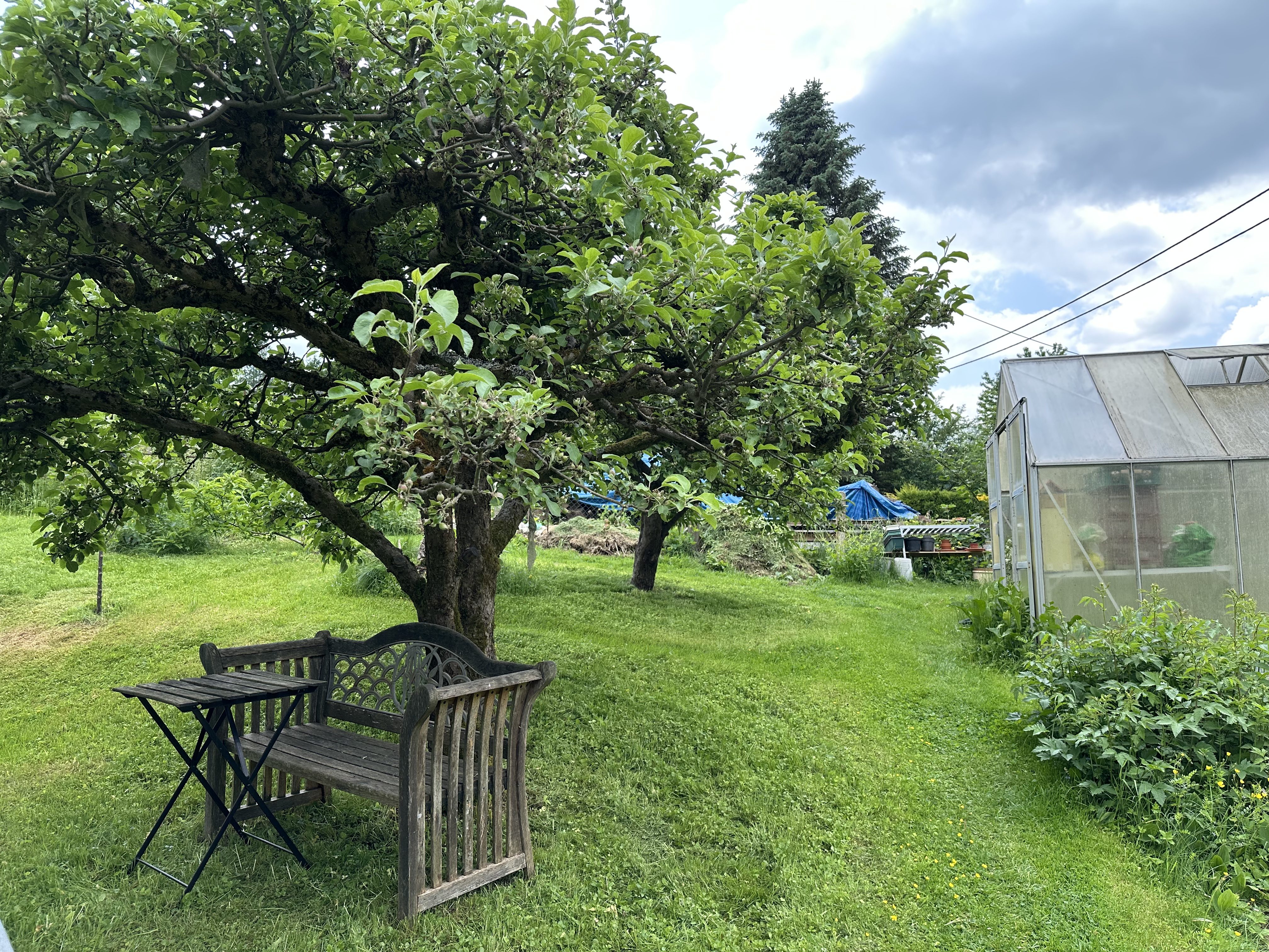 - Naturgarten mit Streuobstwiese und Gewächshaus.